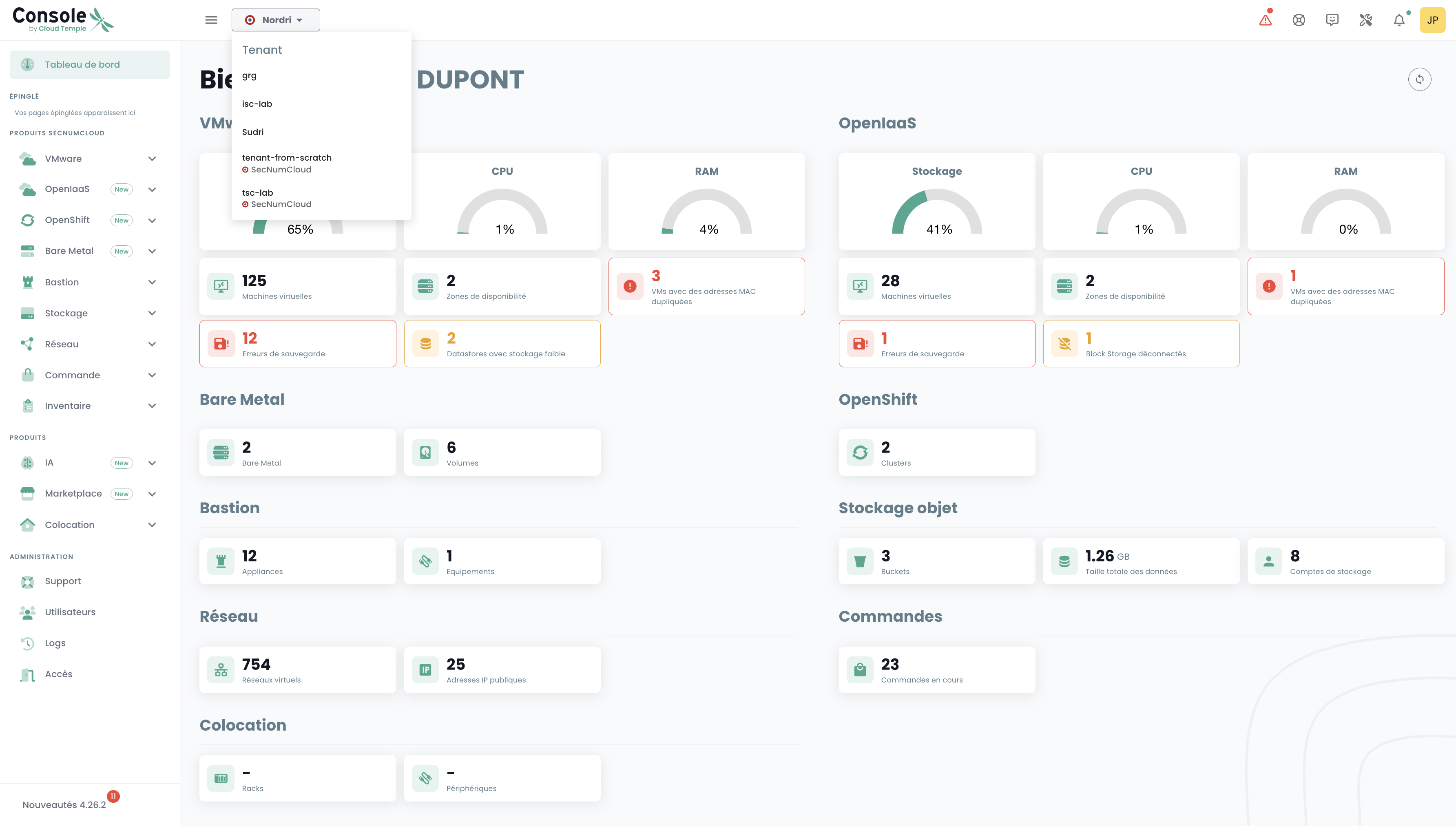 Nota : Les ressources d'un tenant lui sont propres et ne sont pas mélangeable avec d'autres tenants.