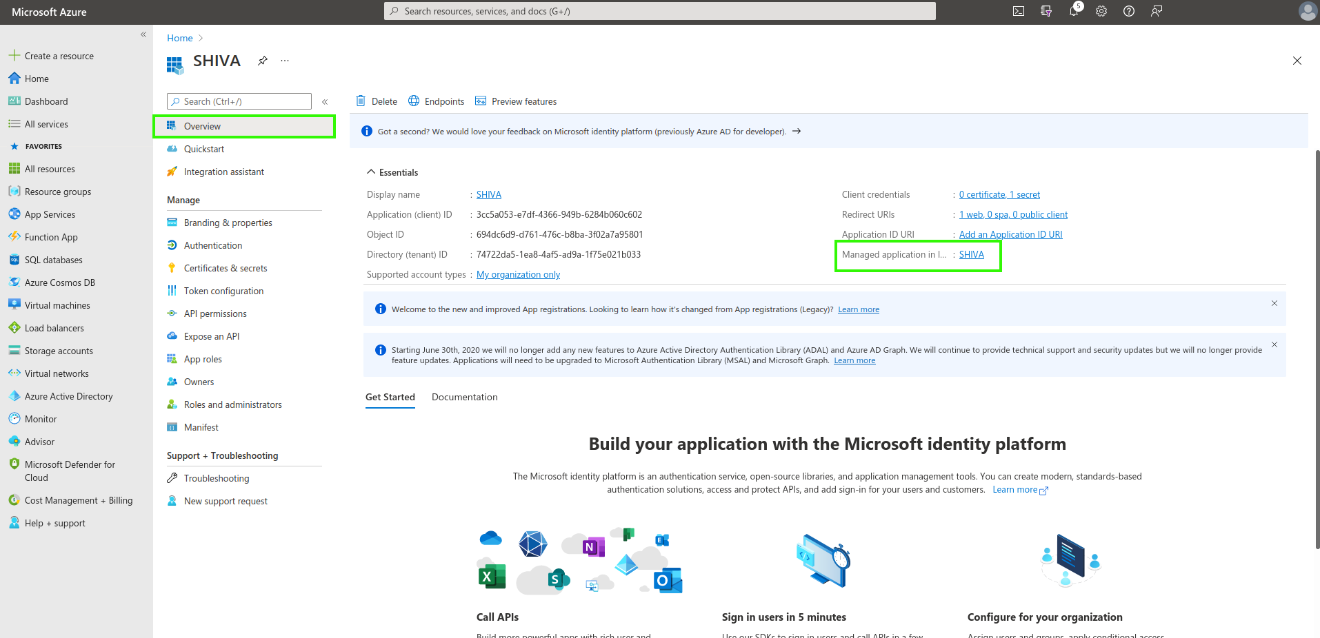 Les informations Application (client) ID et Directory (tenant) ID sont les informations utiles à fournir dans la demande de support à l'équipe Cloud Temple pour activer l'authentification Microsoft EntraID au niveau de votre organisation.