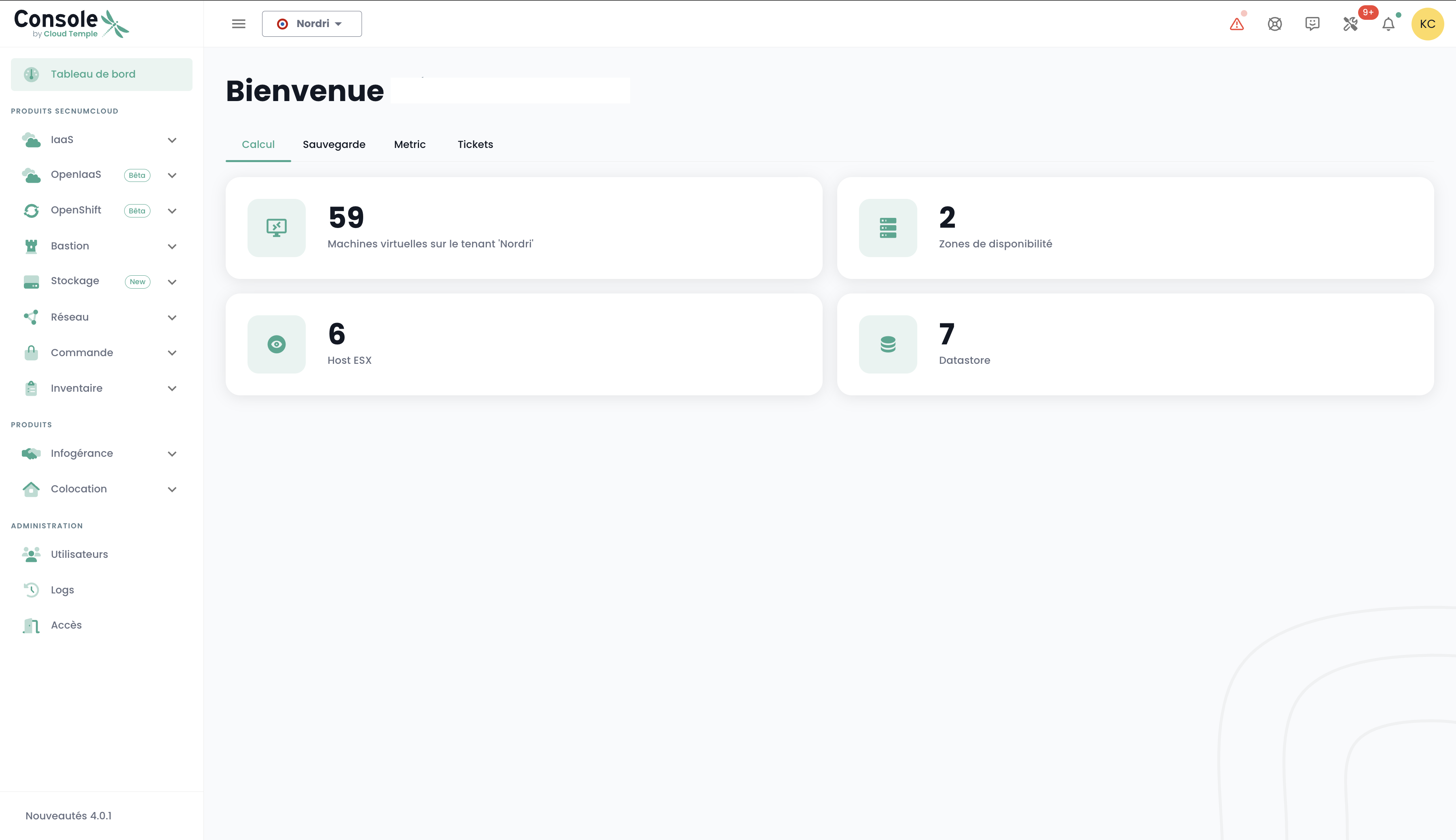 Click on the 'New Features' icon at the bottom left of the green banner. You will find detailed information about the changes for each version of the Cloud Temple console.