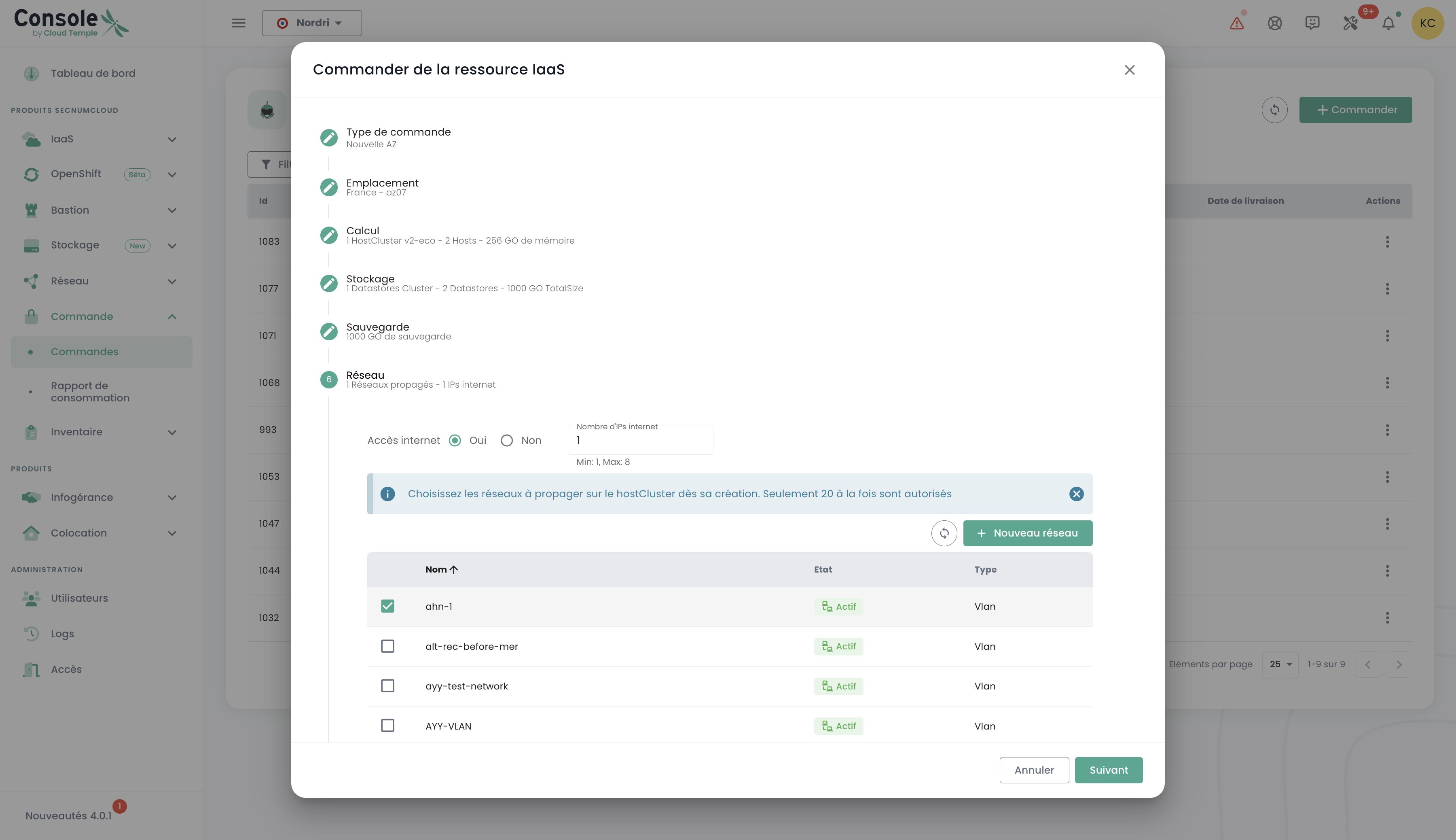 - Limit: Maximum of 20 networks per order. You can place multiple successive orders to extend this number according to your needs