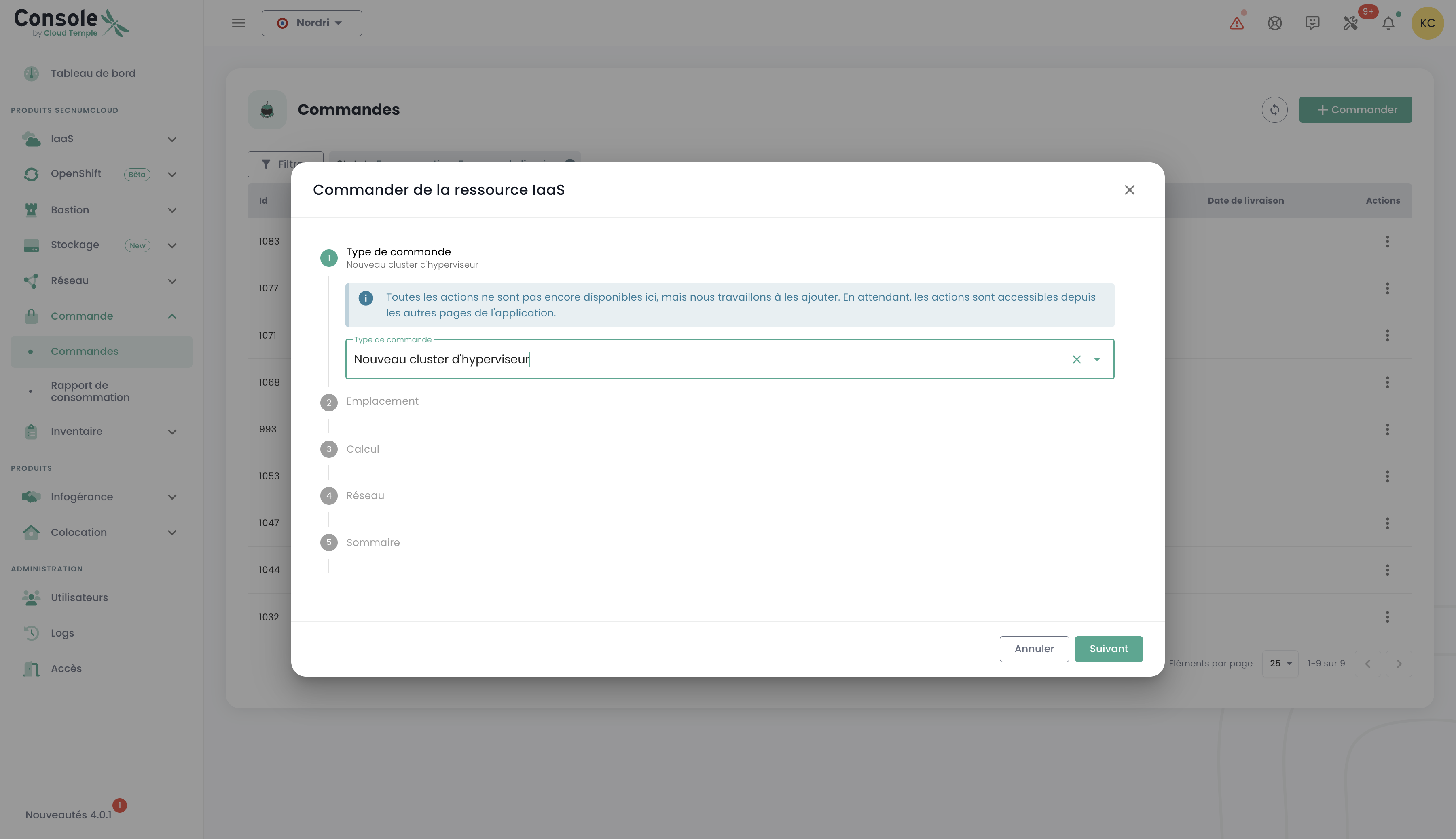 Open IaaS clusters follow similar rules regarding homogeneity and high availability. Computing resource management is also performed via the 'OpenIaaS' menu, with the same access rights requirements.