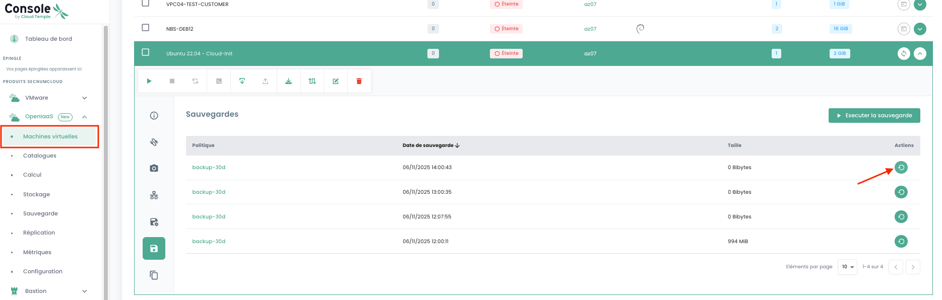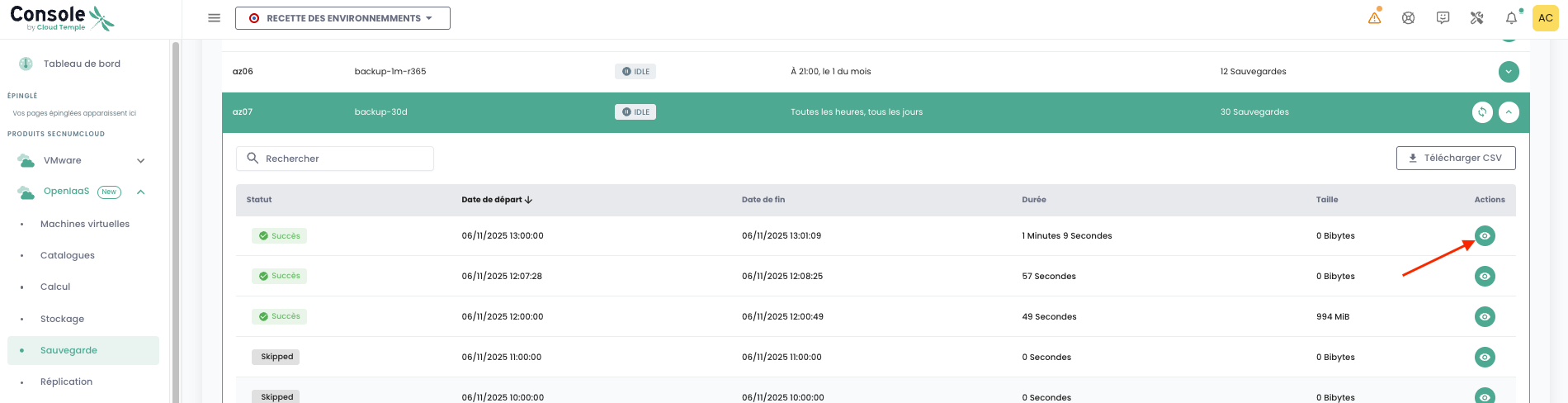 Note: Warning! SecNumCloud requires that at least one backup policy is assigned to each virtual machine.