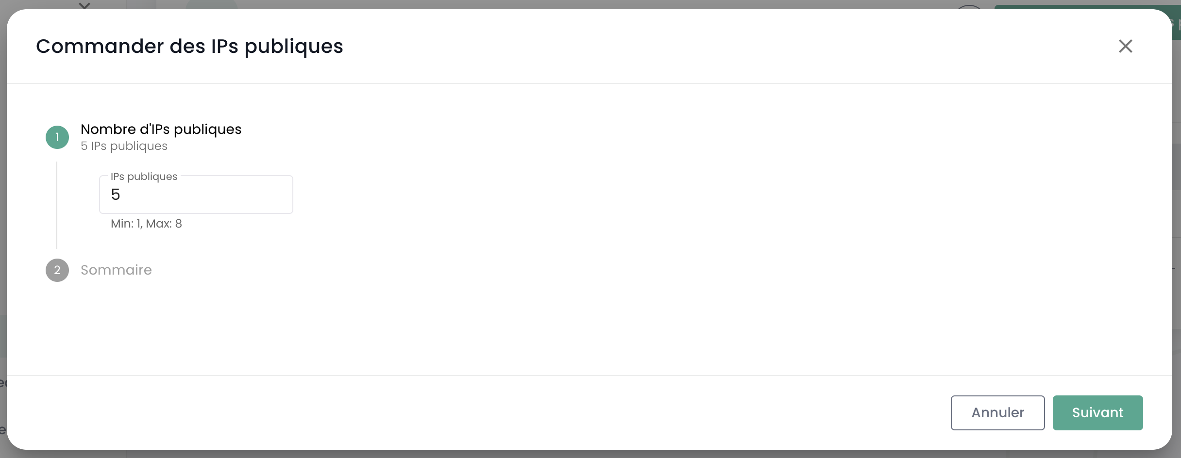 Öffentliche IP-Adressen können über die Schaltfläche 'Öffentliche IPs bestellen' bestellt werden: