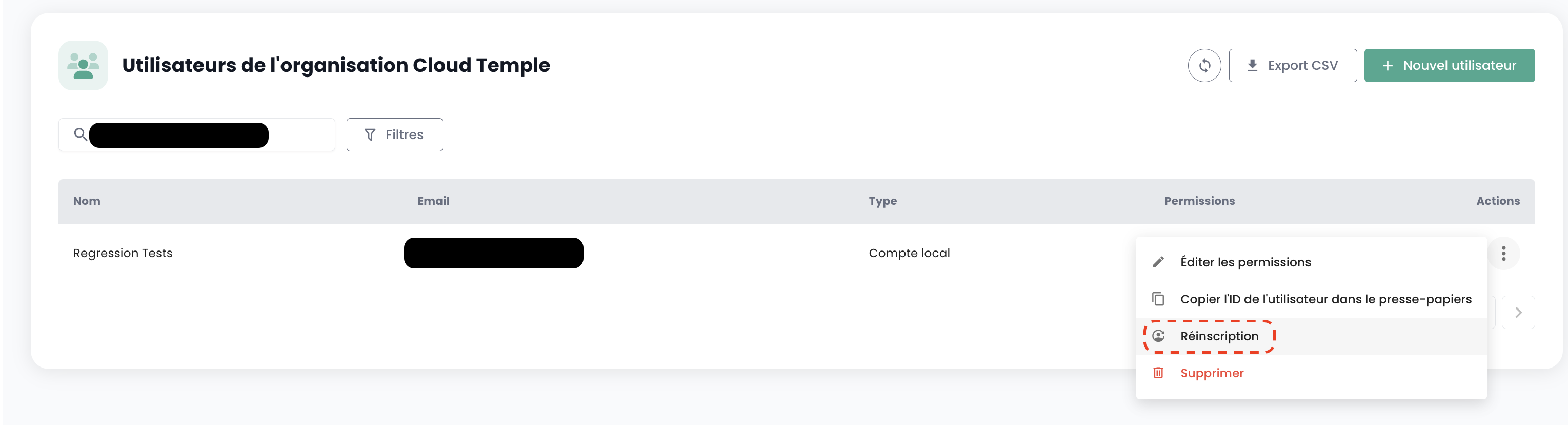 When a user has been provisioned but did not validate their registration within the expiration period of the email sent by the Console, they can no longer confirm their registration. In such cases, it is possible to resend a link so the user can renew their initial registration.