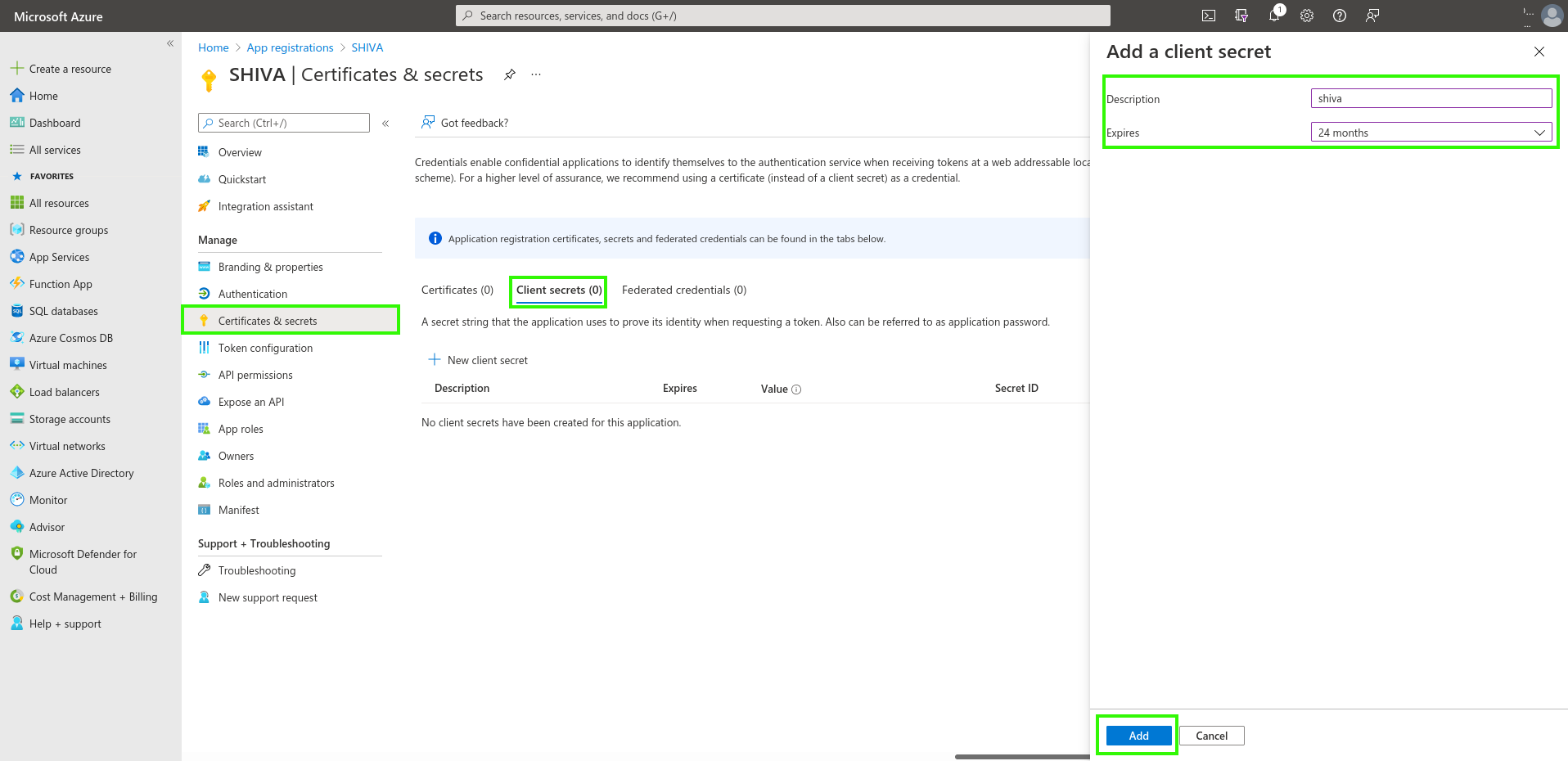 Note: The secret's expiration date cannot exceed 24 months, even with a custom expiration date.