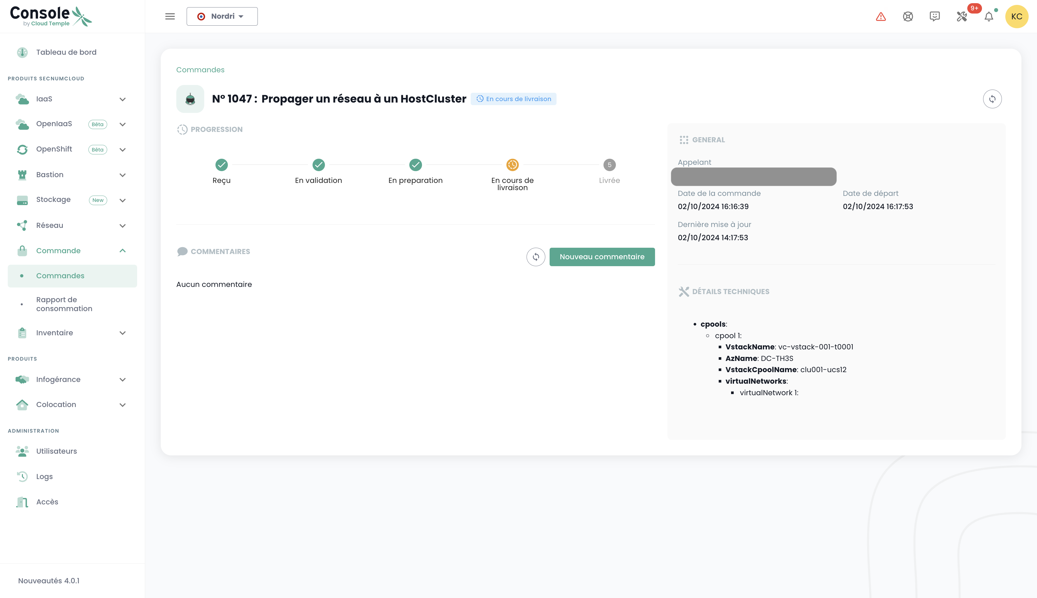 You can also view deliveries directly through the Cloud Temple console notifications: