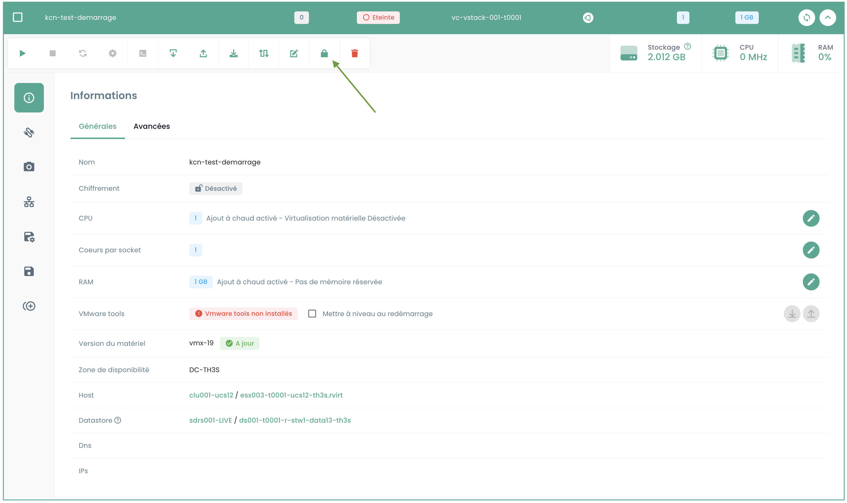 In the virtual machine's general information, you will find the status indicating whether the machine is already encrypted or not.