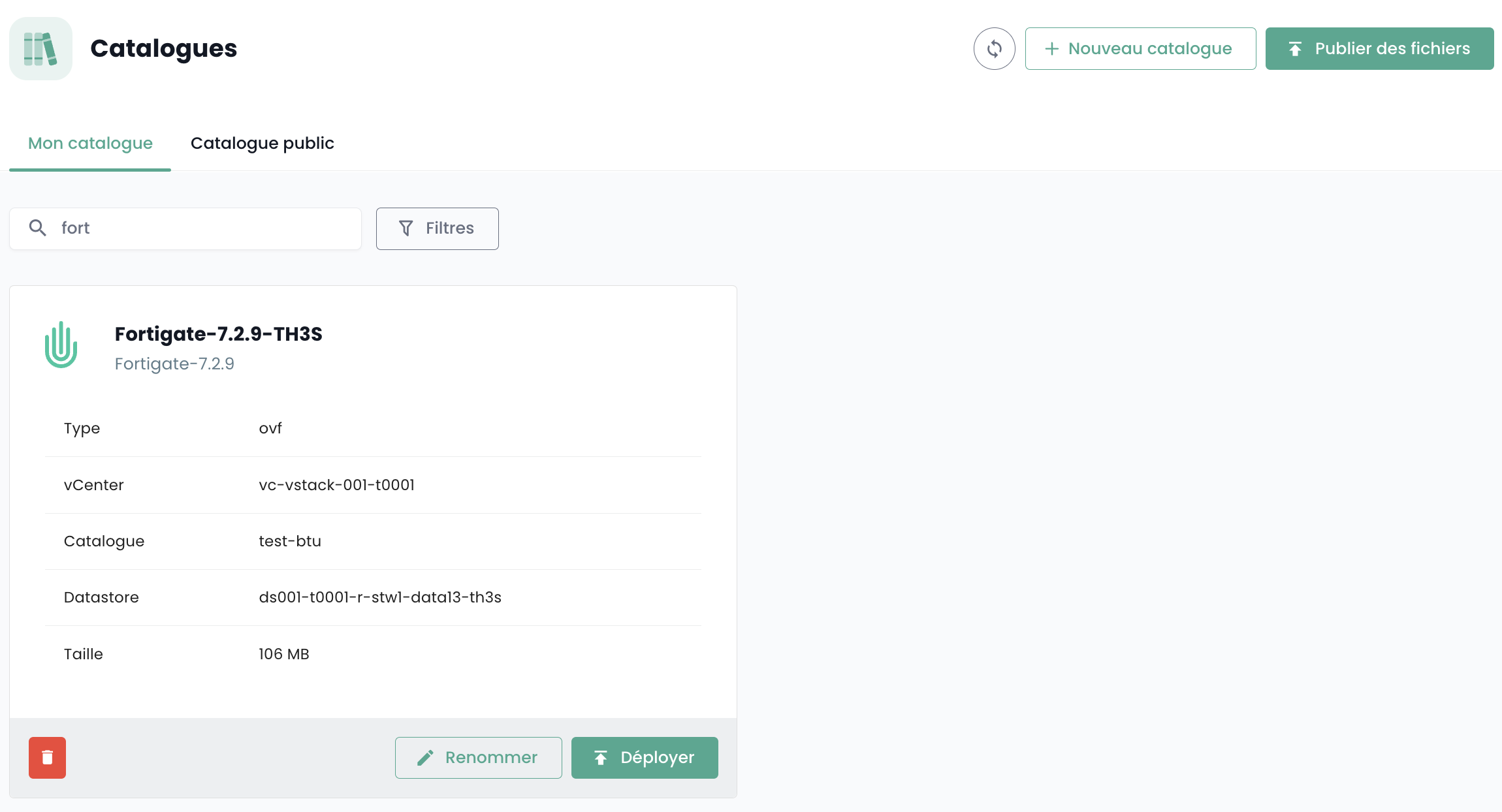 Log in to your tenant within the Cloud Temple console, then go to "Catalog" and "Publish Files":