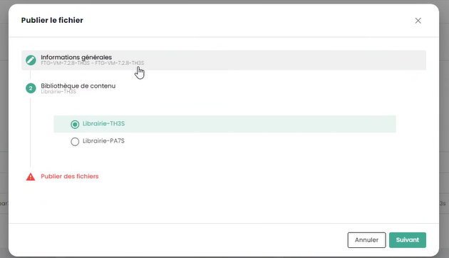 Then select the files to publish in the library (2):