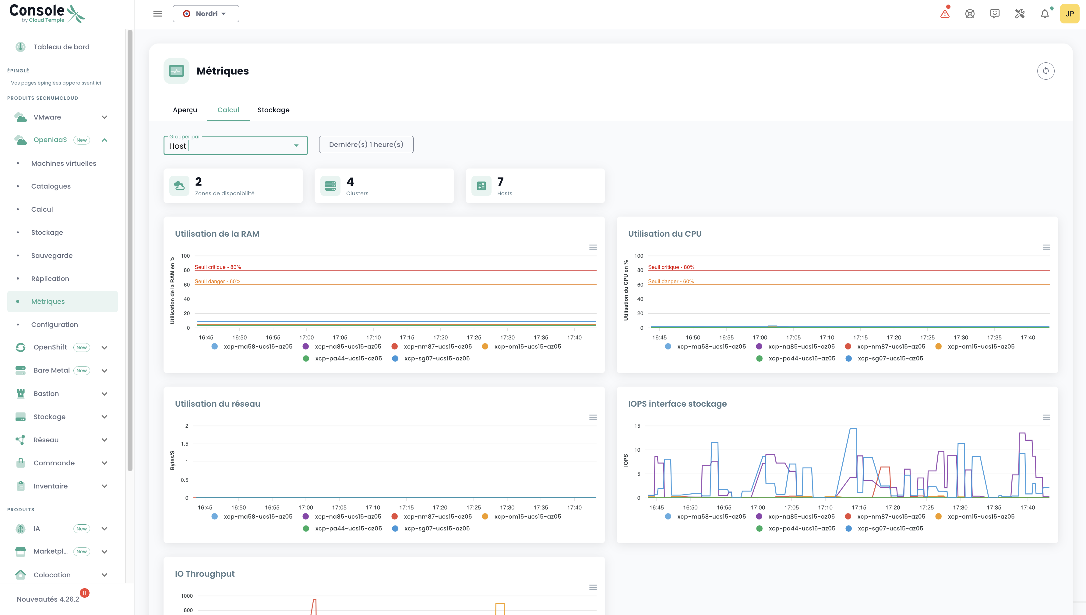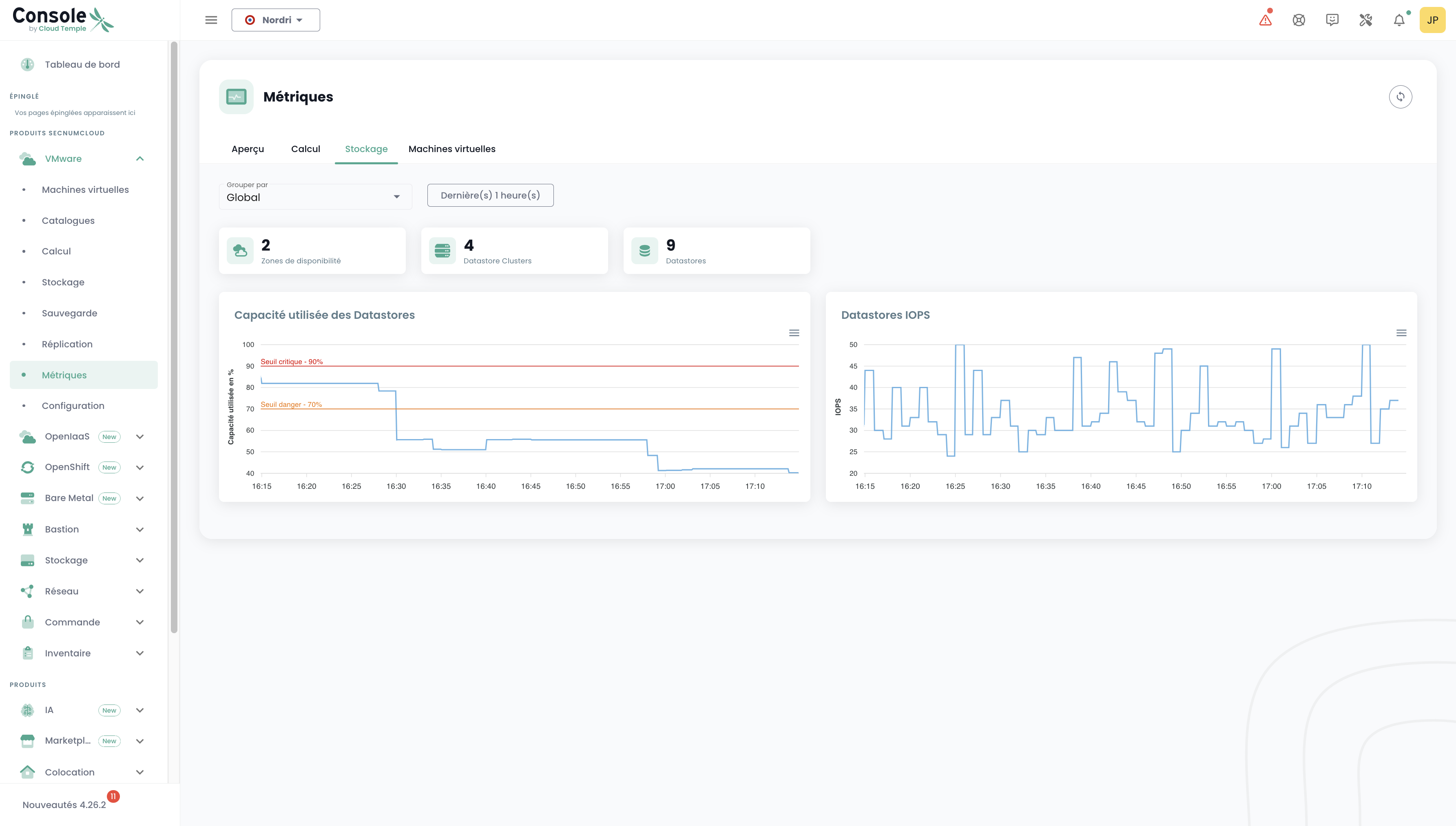 La mayoría de los clientes de Cloud Temple cuentan con herramientas de visualización, monitoreo y metrología para el seguimiento de sus operaciones.