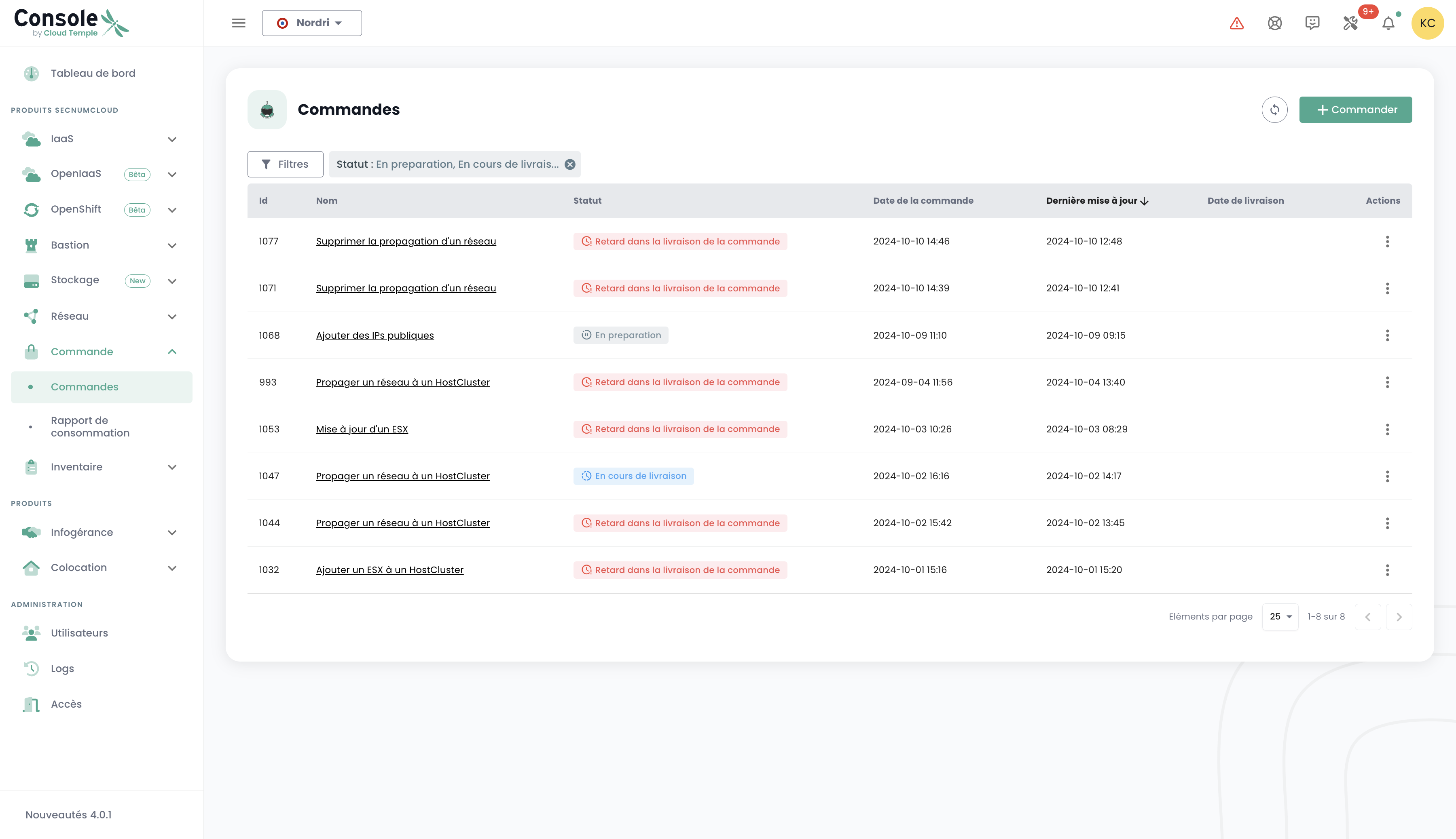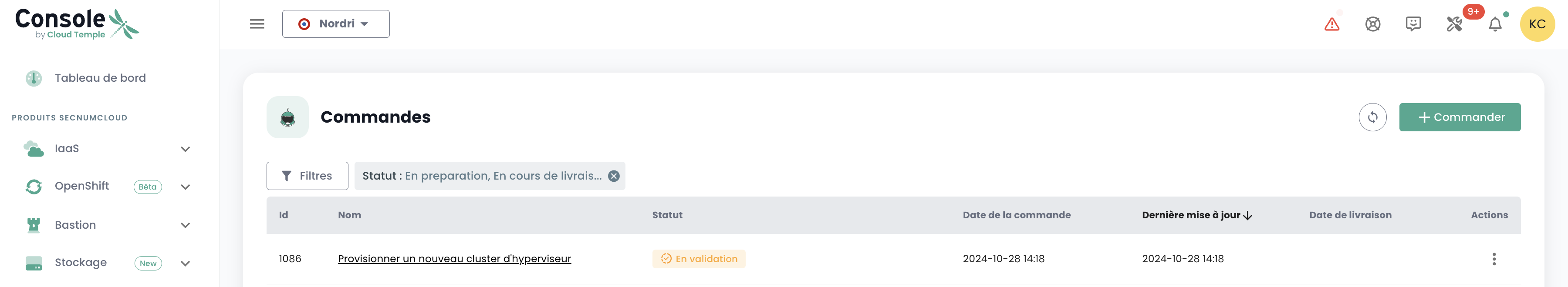 También es posible ver directamente las entregas a través de las notificaciones de la consola Cloud Temple: