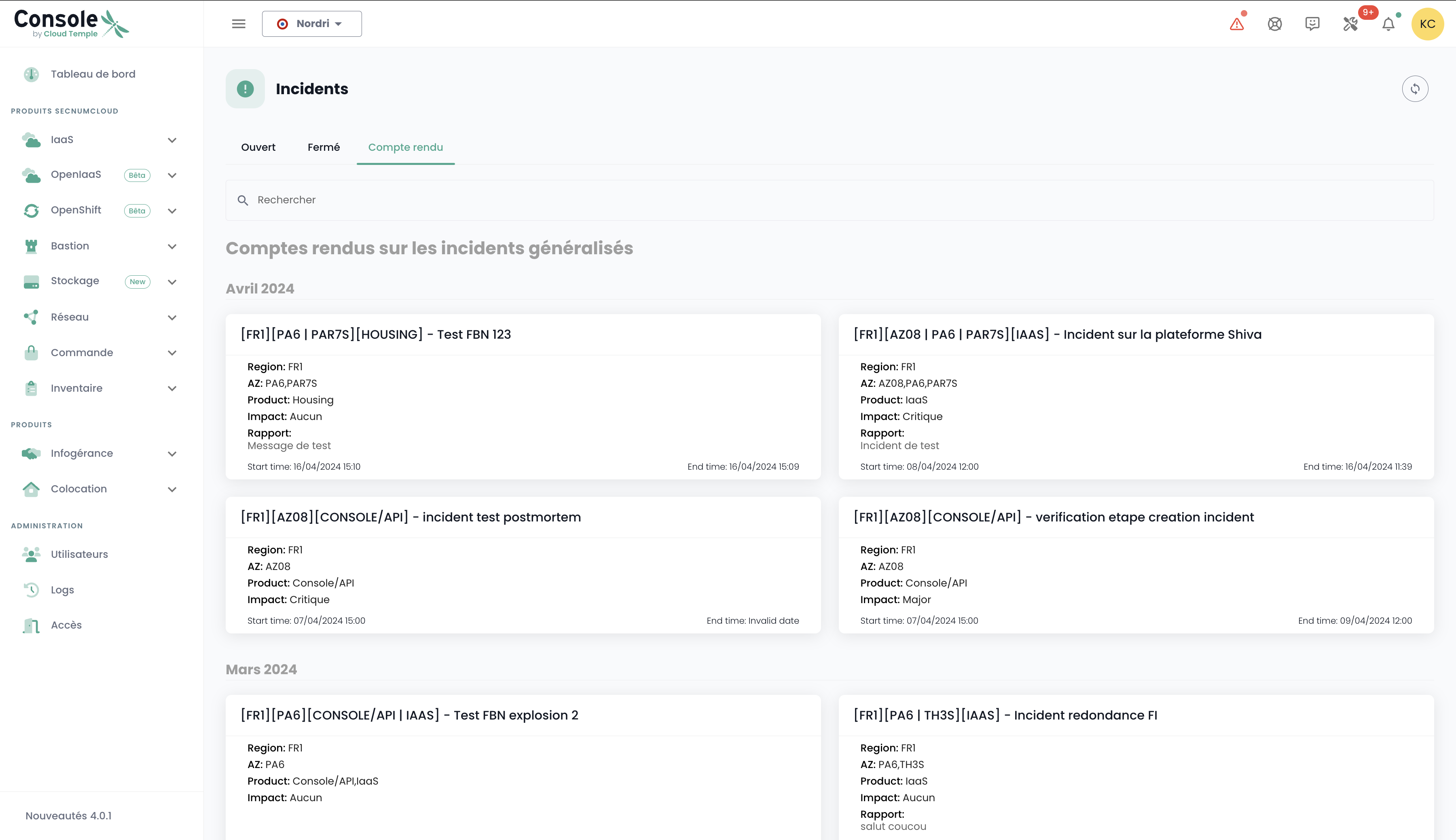 Es posible obtener informes sobre incidentes globales. El acceso a estos informes requiere el permiso específico 'incident_management'. Los informes de incidentes globales se archivan y permanecen accesibles durante 60 días tras su resolución, garantizando una trazabilidad completa de los eventos del sistema.