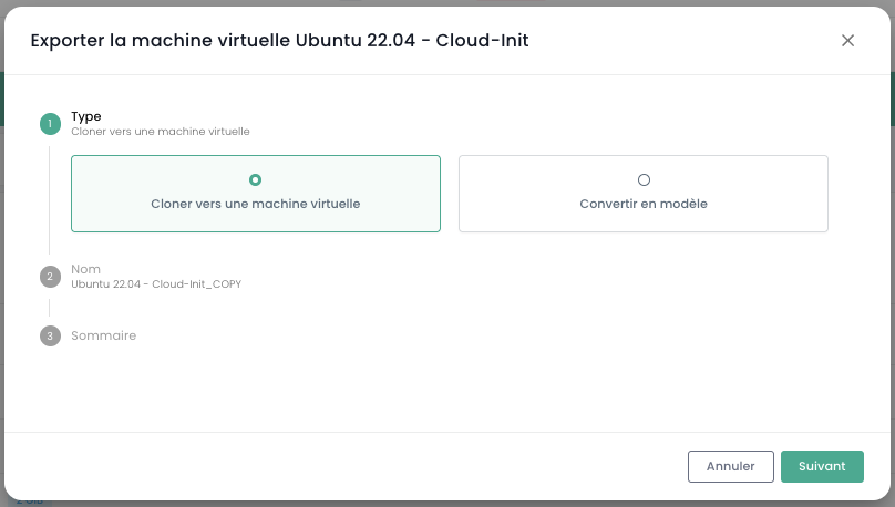 Nota: ¡Cuidado! SecNumCloud exige que haya al menos una política de copia de seguridad asignada para cada máquina virtual.