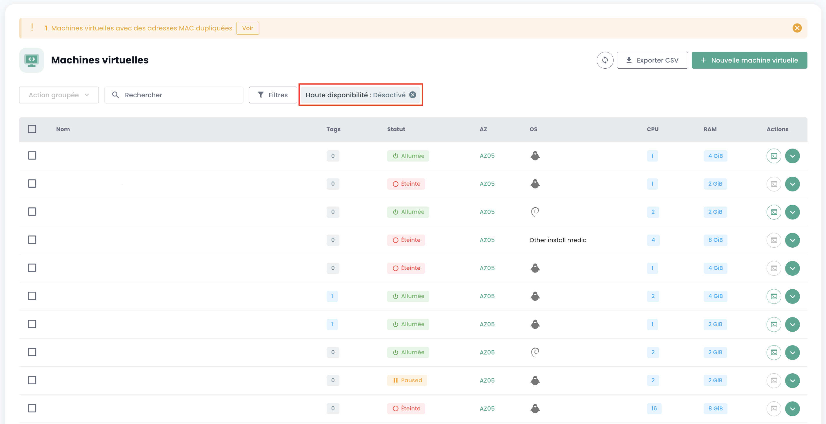Para ver todas las máquinas virtuales que pueden impedir la activación de la alta disponibilidad en el grupo: