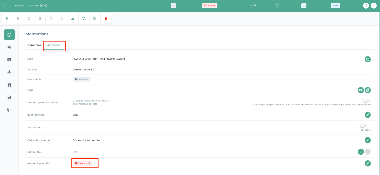 Además de la gestión del grupo, las máquinas virtuales también deben configurarse. Para ver la configuración de la máquina virtual, simplemente vaya a las opciones avanzadas: