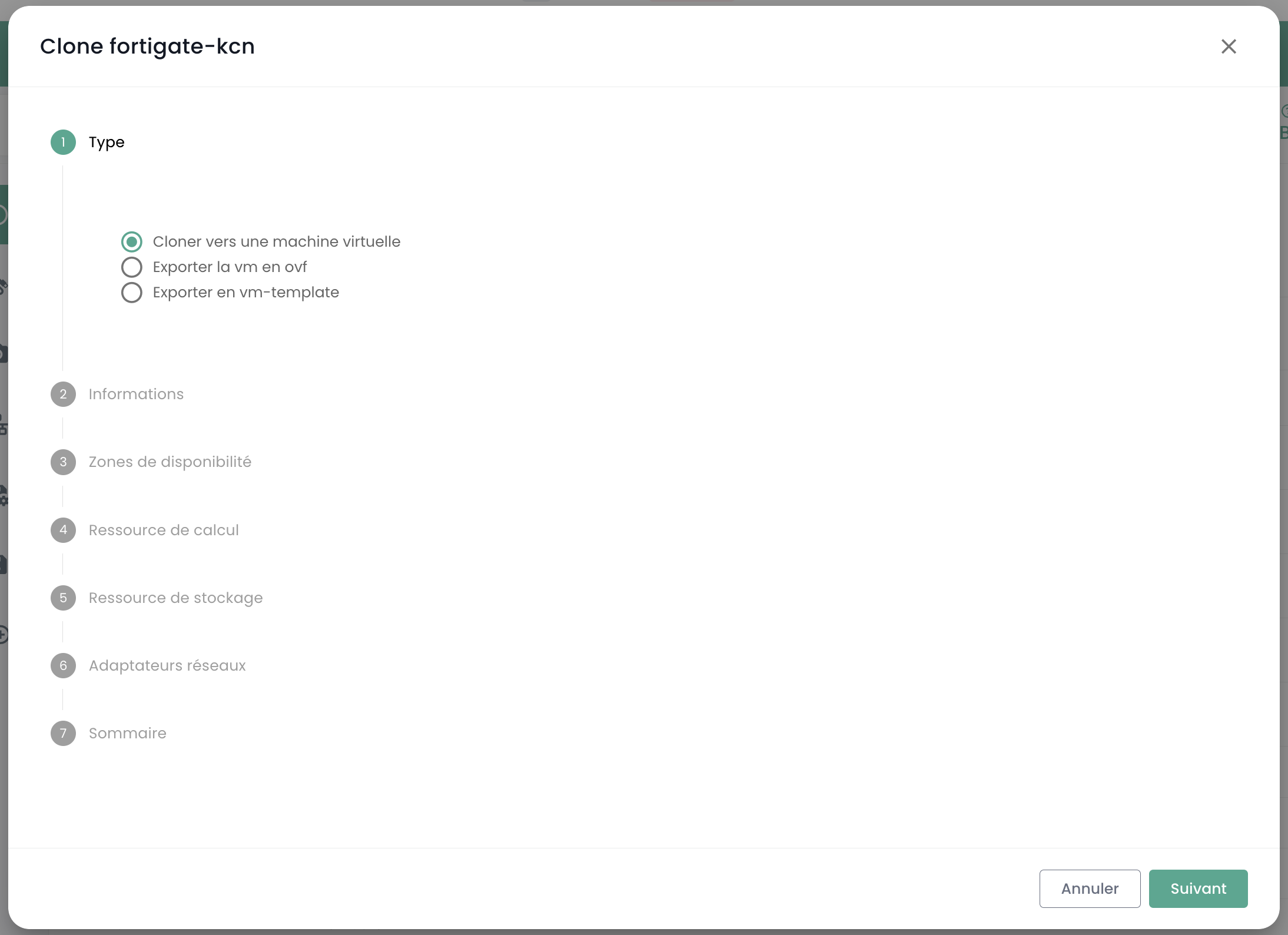 Nota: ¡Cuidado! Secnumcloud exige que haya al menos una política de copia de seguridad para cada máquina virtual.