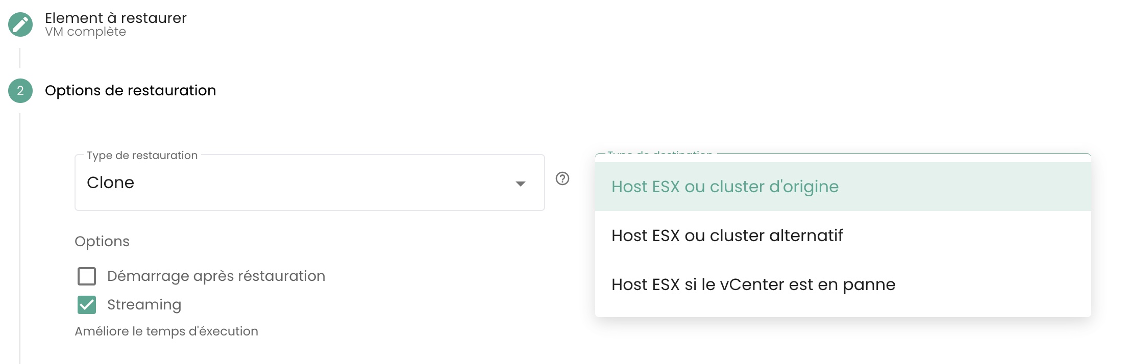 3 opciones principales para restaurar una VM, en su destino original o en un destino diferente: