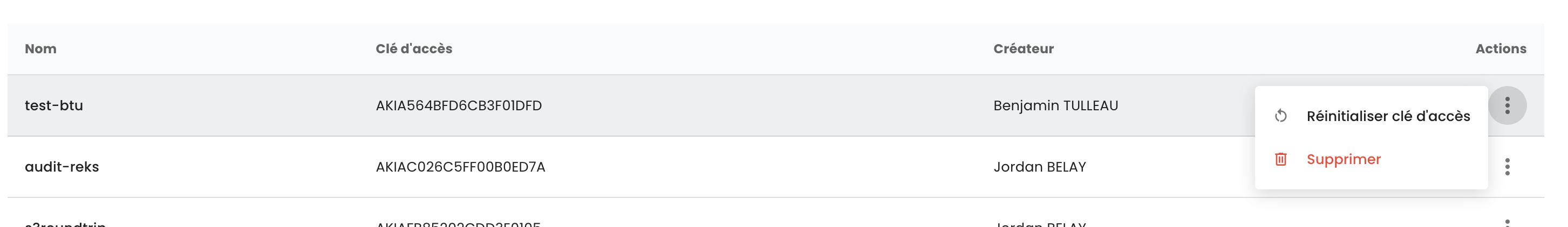 ATENCIÓN: Las claves de acceso y secreta solo se muestran una vez. Después de esta primera aparición, será imposible volver a consultar la clave secreta. Es por ello esencial anotar esta información inmediatamente; de lo contrario, deberá generar una nueva pareja de claves. La regeneración se realiza desde las opciones de la clave, seleccionando la opción "Restablecer clave de acceso".