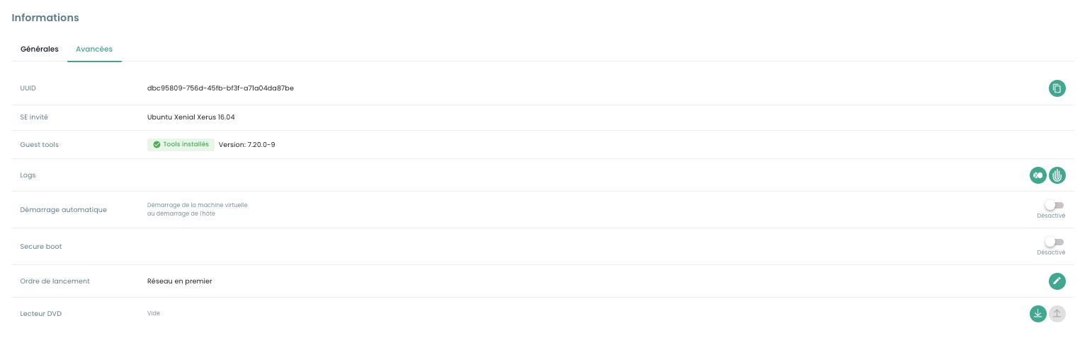 Vous avez accès aux informations suivantes, pour chaque machine virtuelle :