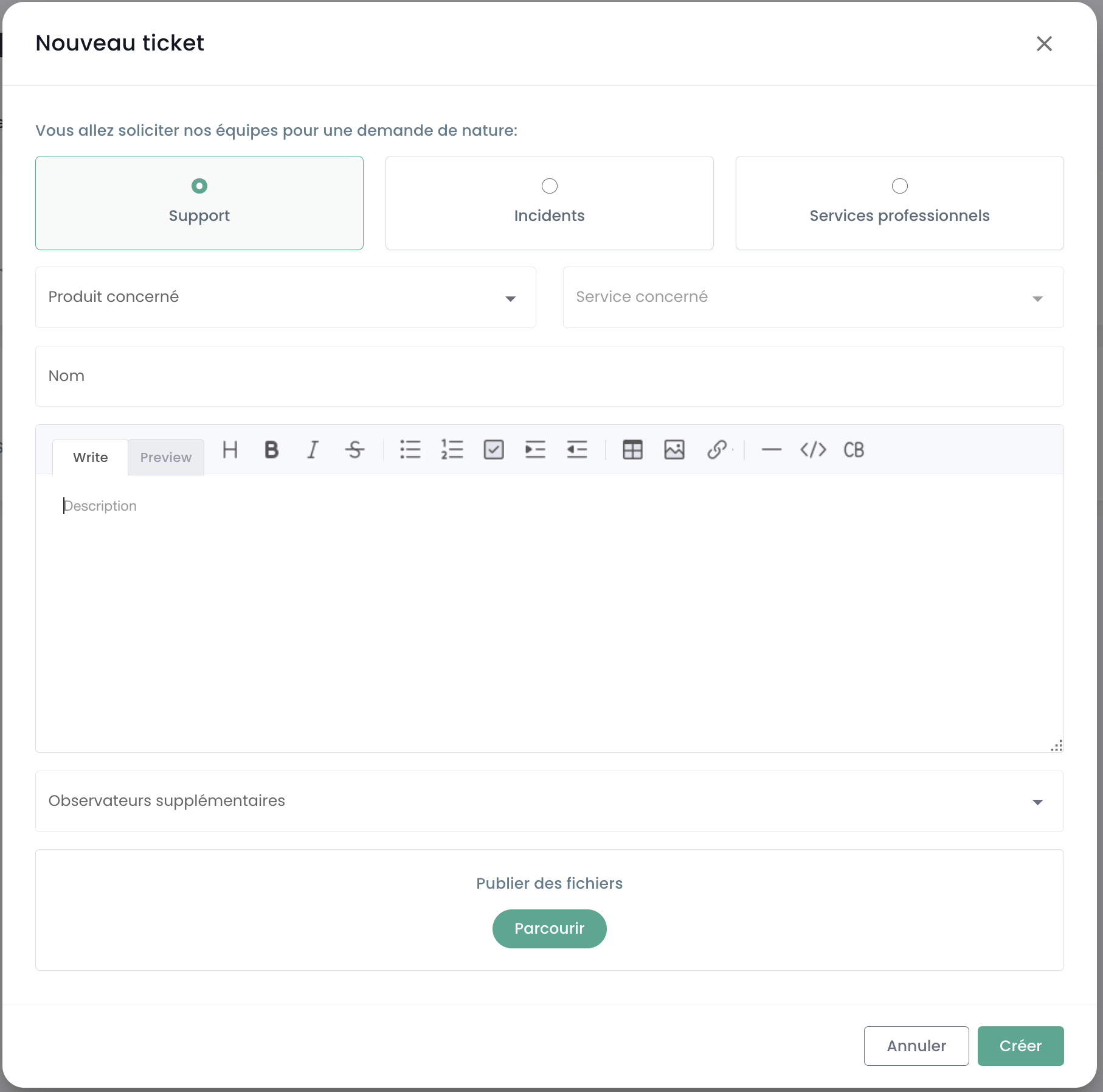 - Richiedere l'assistenza di un servizio professionale (messaggio a disposizione di un ingegnere Cloud Temple per un problema specifico).
