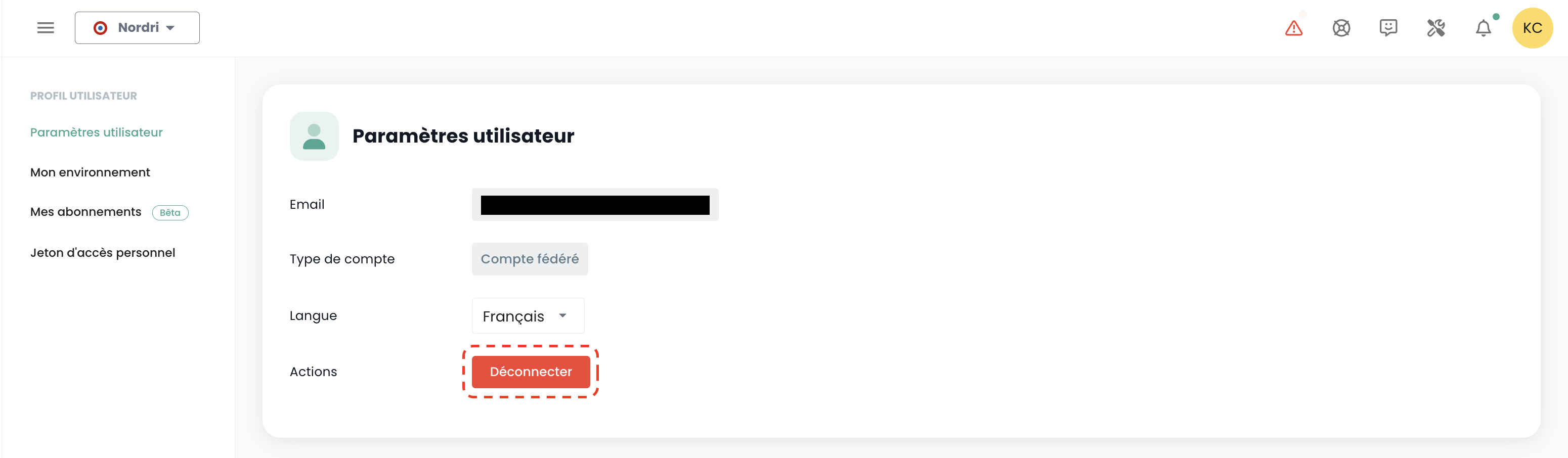 La disconnessione di un utente deve essere effettuata nel suo 'Profilo', in alto a destra dello schermo, quindi 'Disconnetti'.