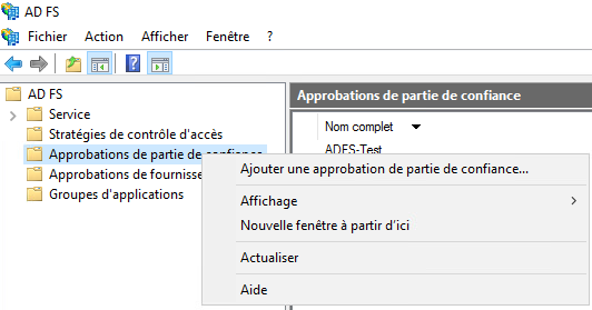 Sul tuo server ADFS, vai su "Aggiungi un'affidabilità di parte fidata".