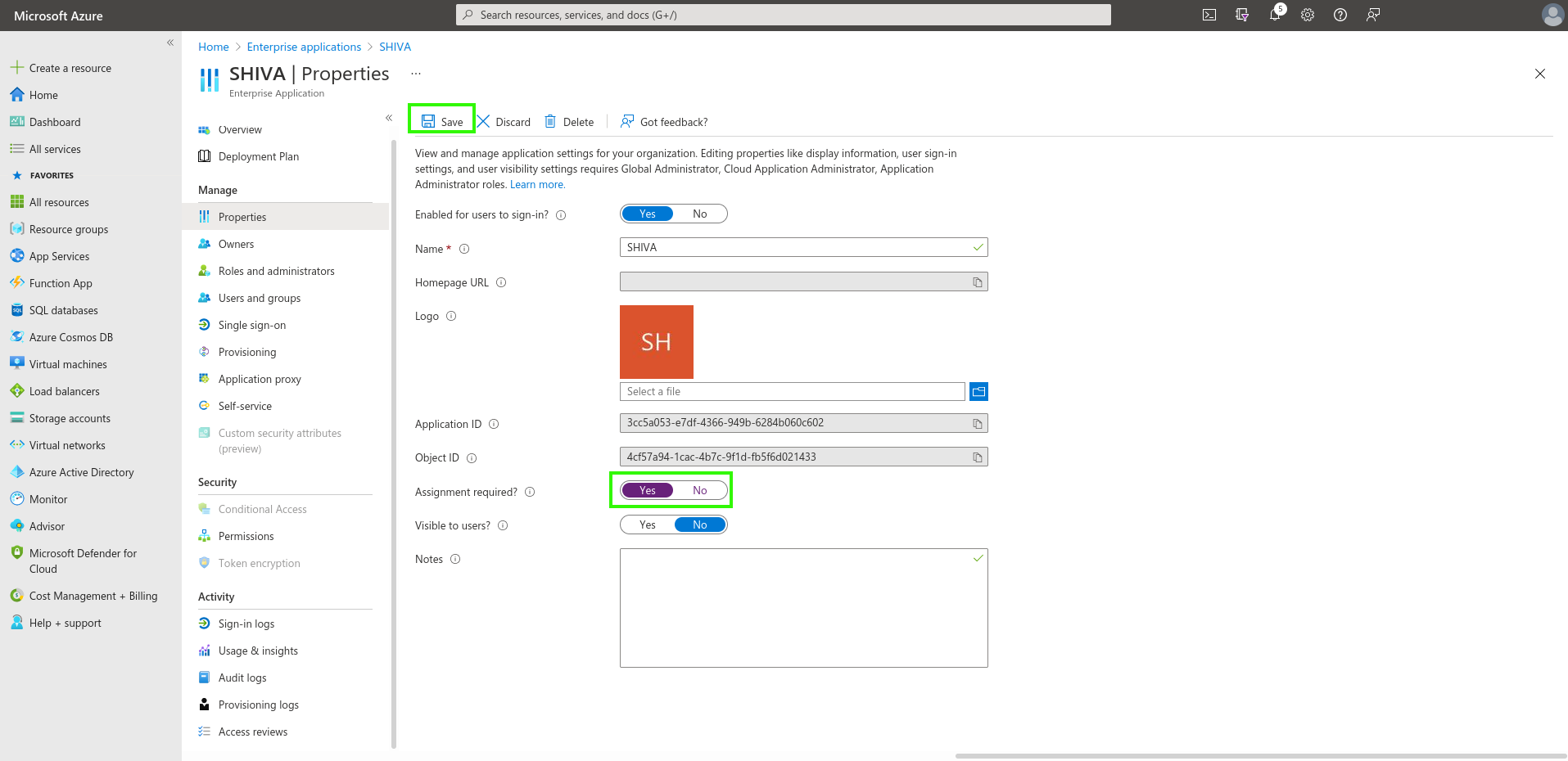 Indicate here the need for user assignment to the application to allow authentication: