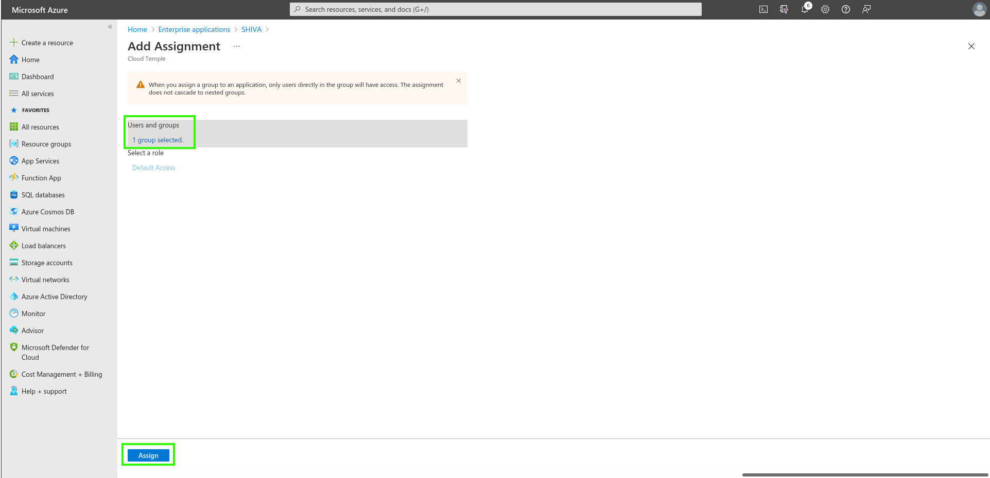 Solo gli utenti e i gruppi assegnati all'applicazione potranno accedere alla vostra organizzazione Cloud Temple tramite la registrazione dell'applicazione.