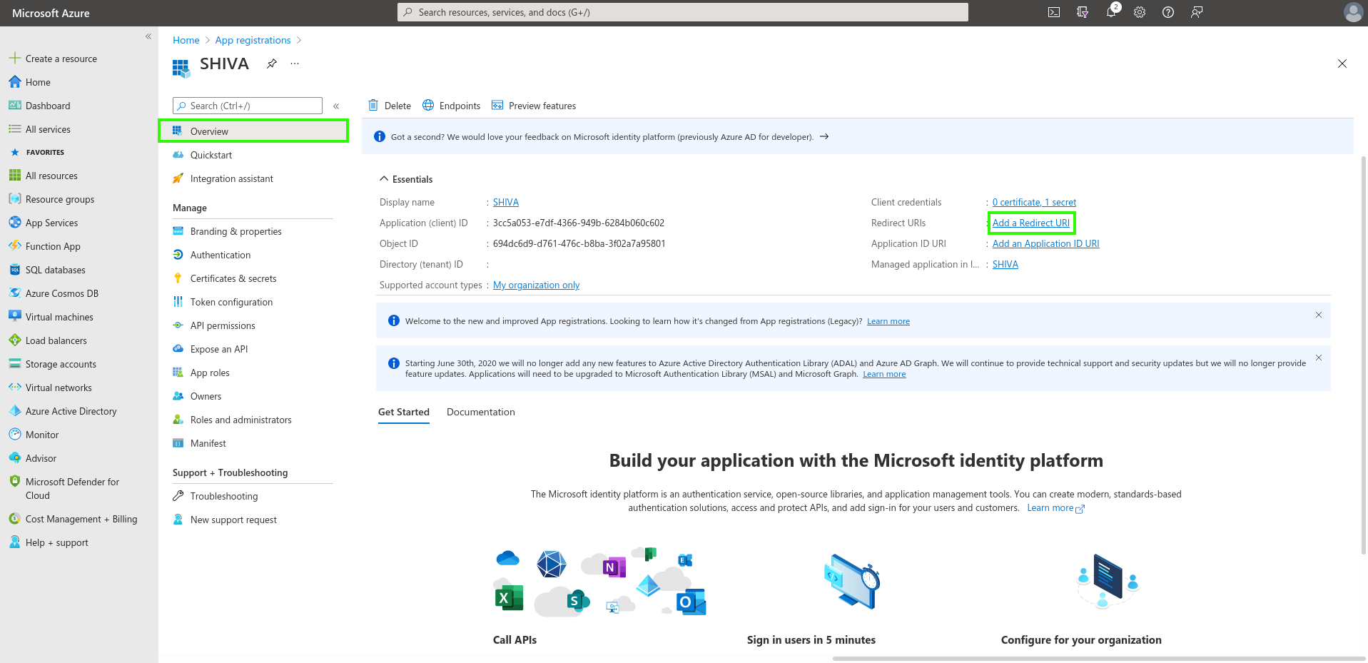 On the App Registration home page, in the Overview menu, click on "Add a Redirect URL".