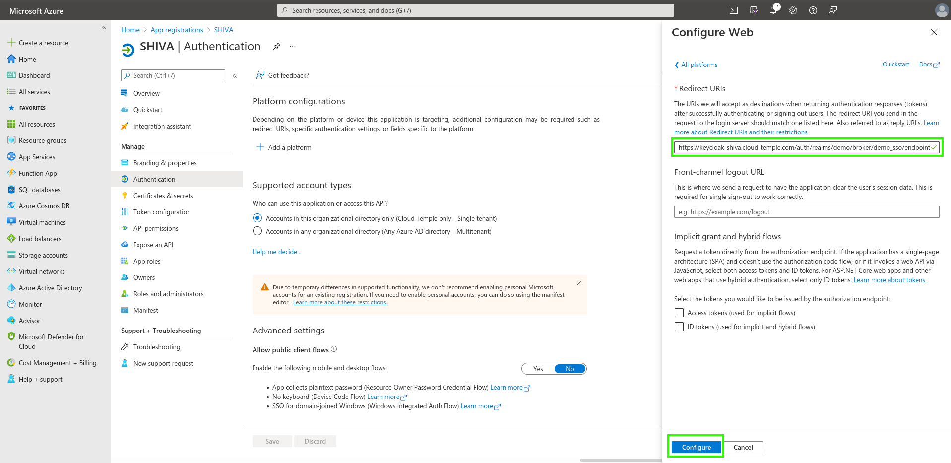 Ecco un esempio di configurazione del repository di autenticazione di un'organizzazione Cloud Temple con Microsoft EntraID (Azure Active Directory).
