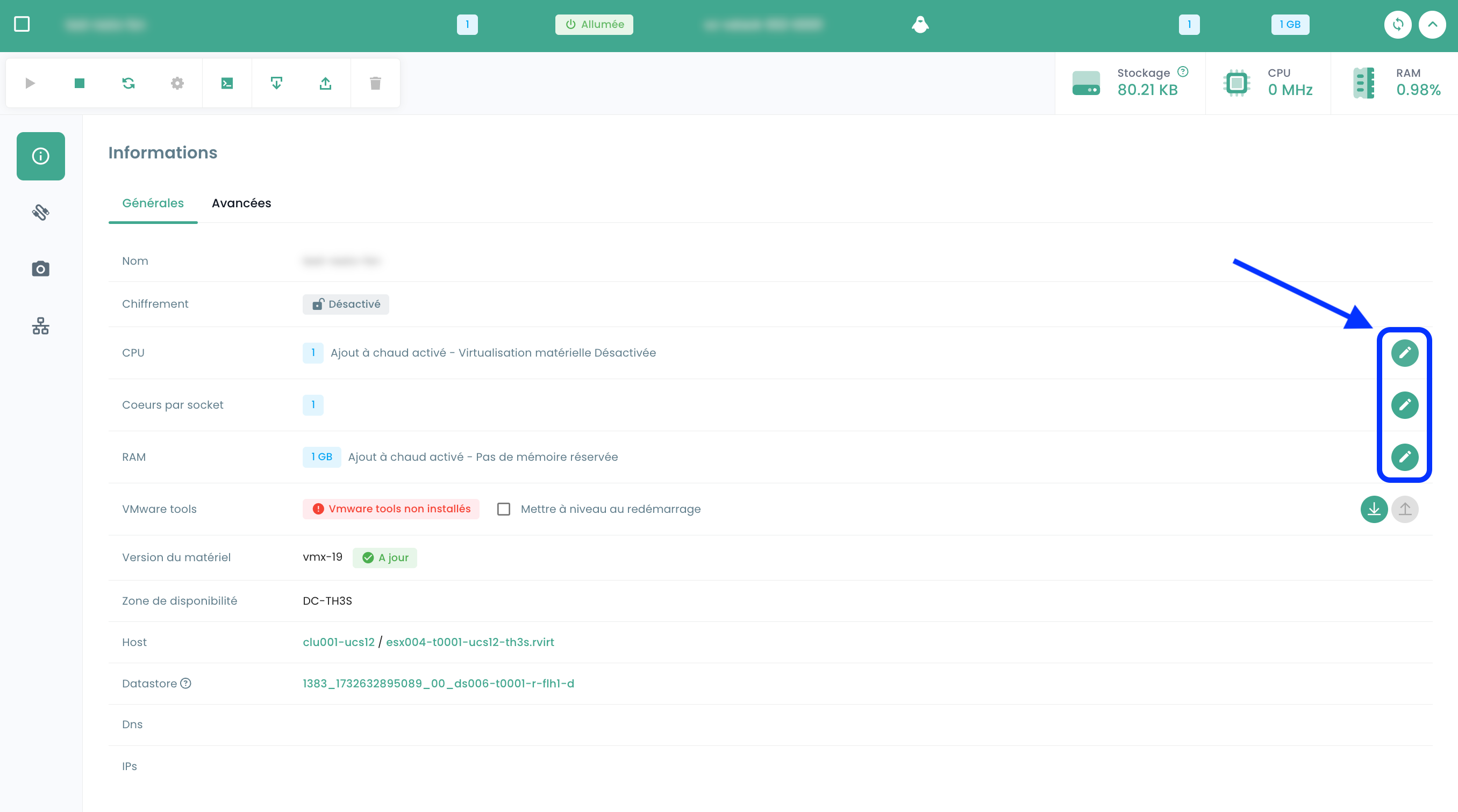 Vai alla scheda 'Macchine Virtuali', visualizza i dettagli di una macchina virtuale, seleziona la scheda 'Informazioni generali' e fai clic sul pulsante di modifica della variabile da modificare: